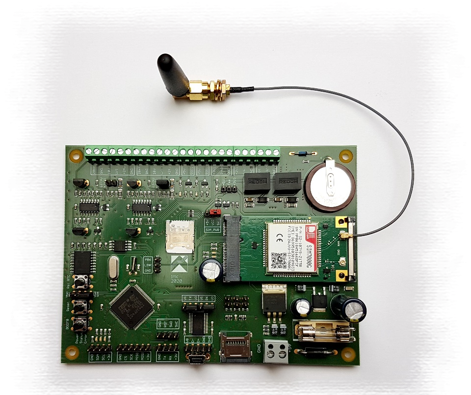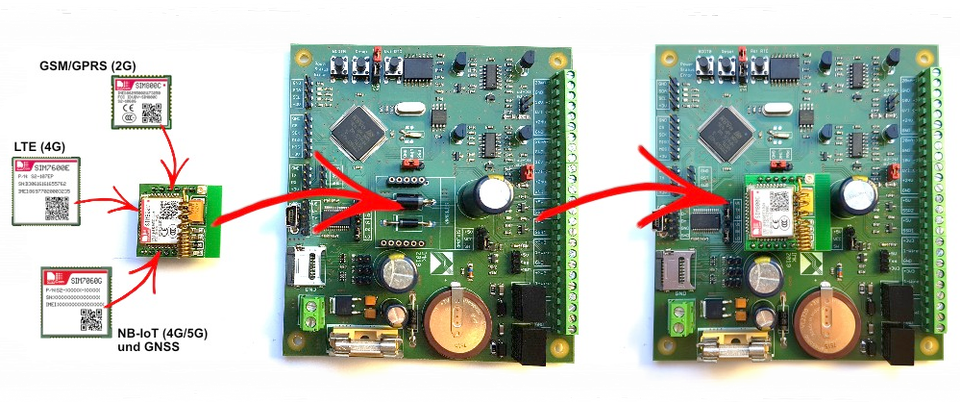 mit GSM-Modul im "Piggyback"-Design (blau)