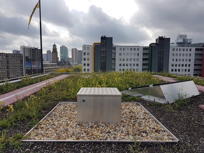 Die „Drossel 4.0“ (Smart Flow Control) ist ein Beispiel für eine typische Anwendung aus dem Bereich „Internet of Things“ (IoT). Im Rahmen des Projekts wurde vom IMK eine Steuerung für die Fernüberwachung von Retentionsdächern entwickelt. Unter anderem erfasst die Steuerung wichtige Zustandsgrößen wie bspw. Wasserstand, Temperatur und Bodenfeuchtigkeit und überträgt sie mittels GSM-Modul an einen zentralen Server, wo die Daten ausgewertet und in einer Datenbank archiviert werden. Auf dem Server wird weiterhin auf Basis aktueller Wetter- bzw. Niederschlagsprognosen ein neuer Soll-Wert für den Wasserstand berechnet und remote an die Steuerung vor Ort übertragen, welche auf dieser Basis dann den gewünschten Wasserstand einregelt. Über den zentralen Server können beliebig viele Steuerungen von Retentionsdächern sternförmig vernetzt und überwacht werden. So kann sowohl die Speicherung als auch das Ablassen in die Kanalisation von generell sehr großen Wassermengen zentral überwacht und gesteuert werden. SowohlHardwareals auchSoftwareder Steuerung sind zu 100% Eigenentwicklungen des IMK.